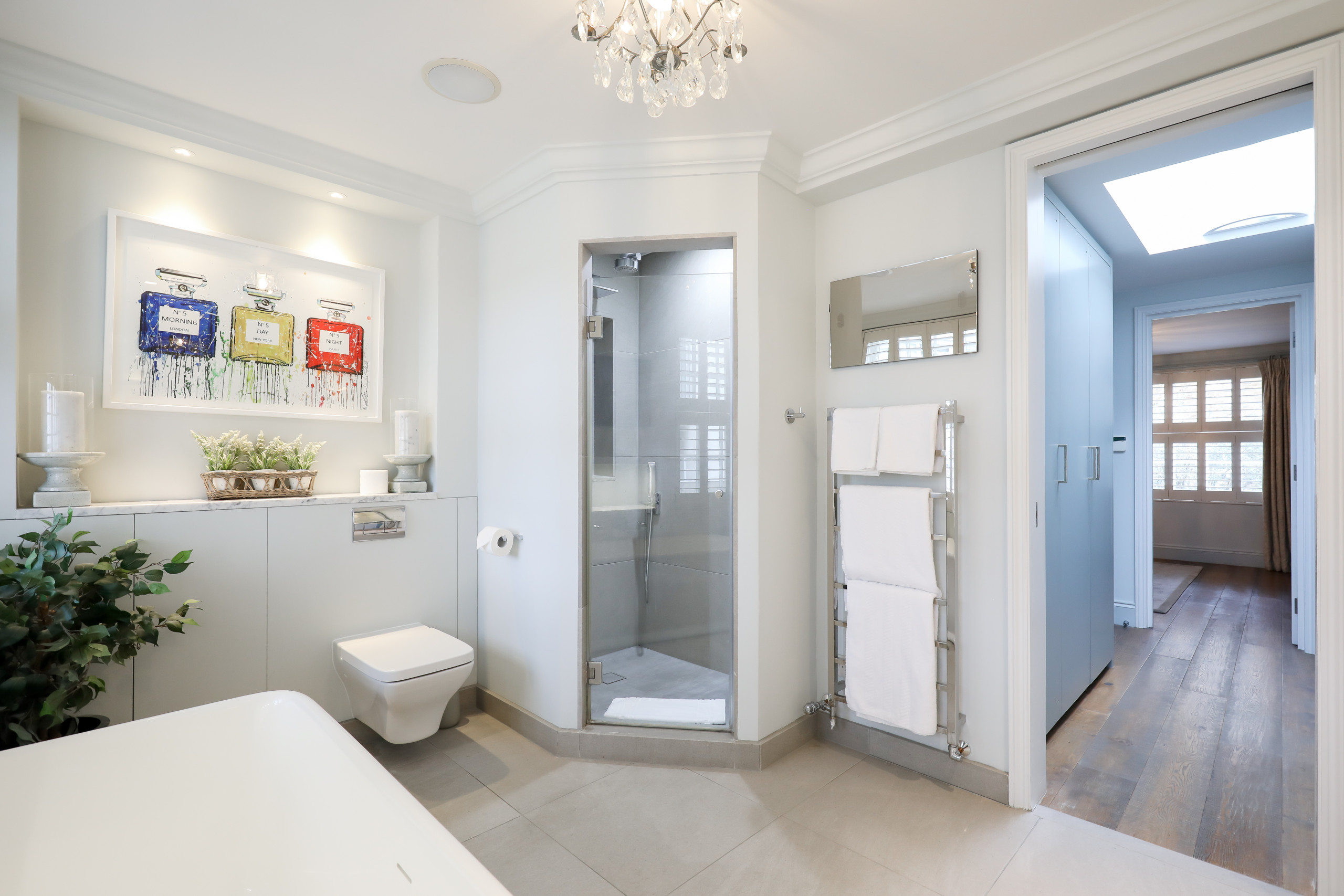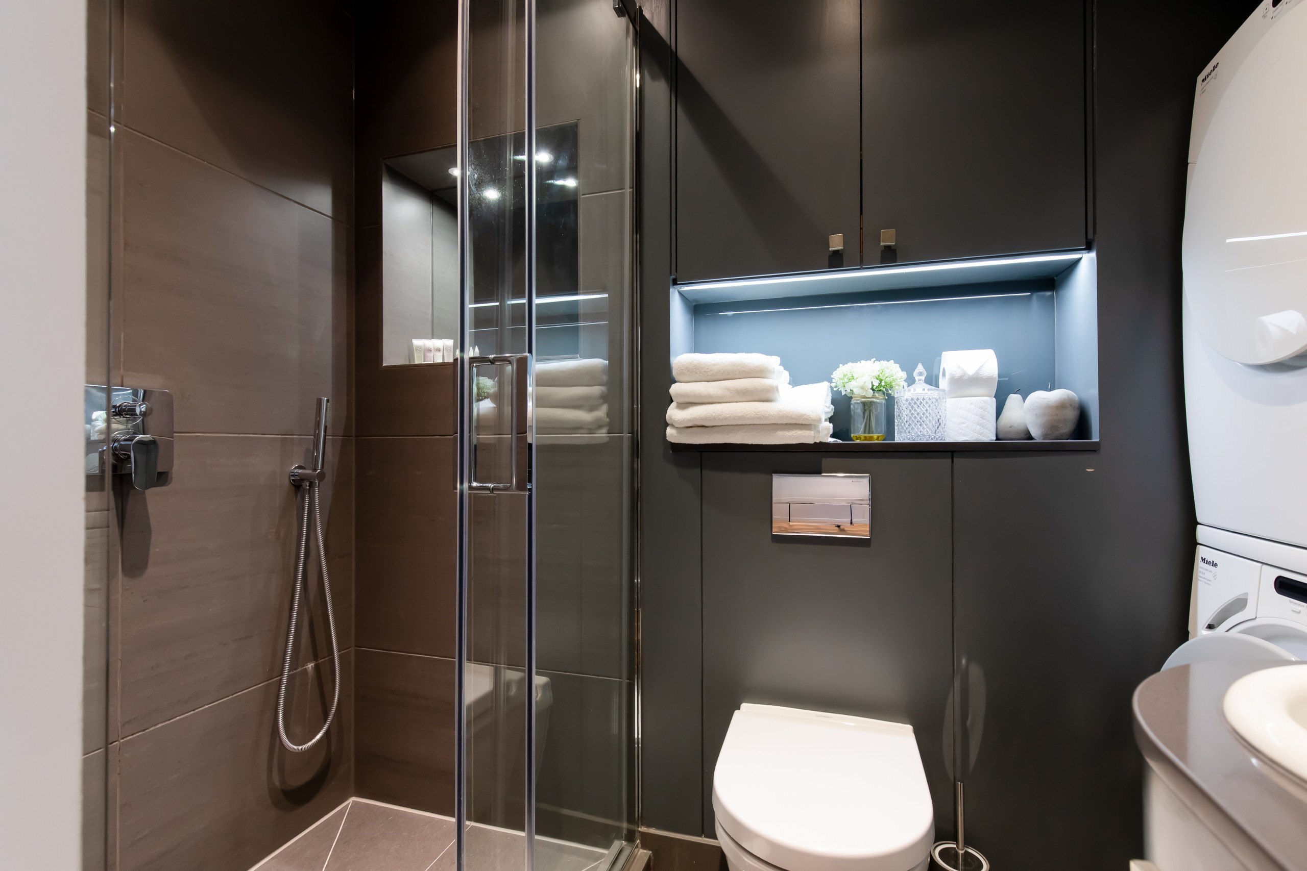 The second bathroom comprises a walk in shower, toilet and basin. The separate washer and dryer are housed here. Starter toiletries and fluffy white towels are provided as standard