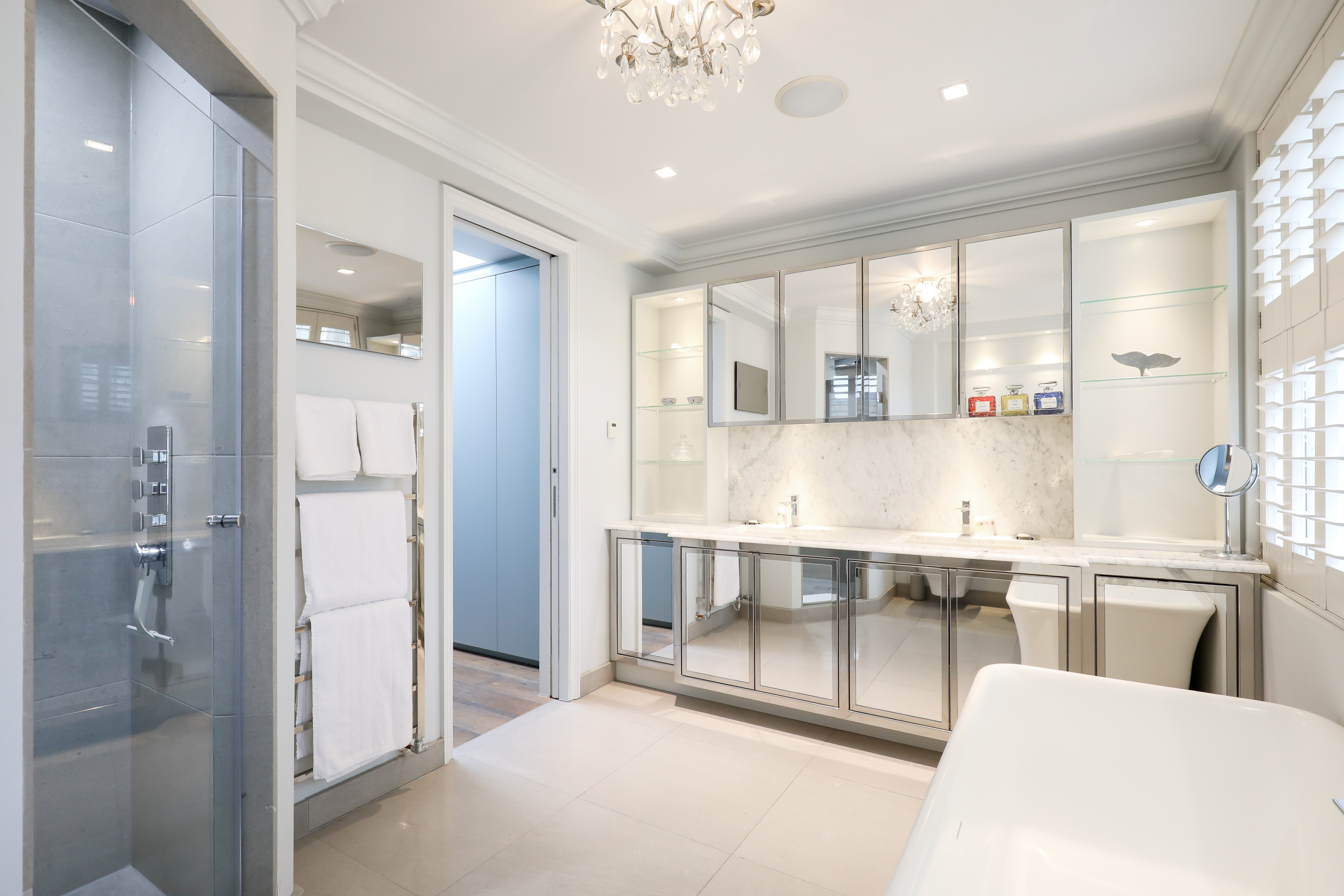 There is a large modern bathroom adjacent to the master bedroom with a walk-in shower, free standing bath, double basin and a TV.